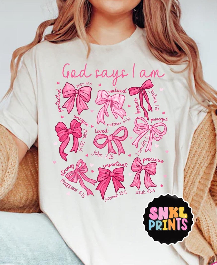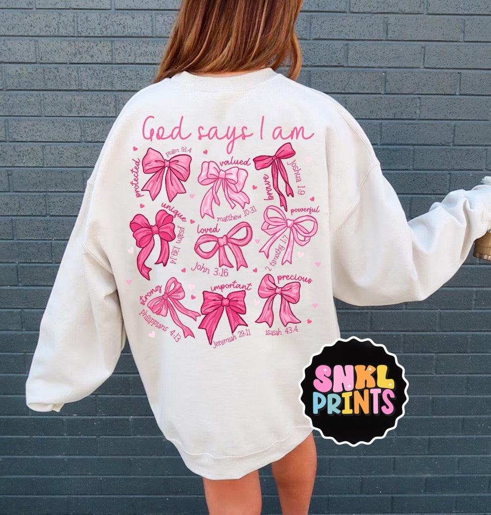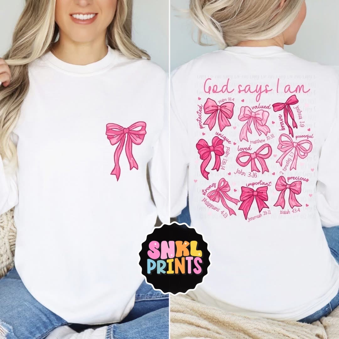 Embrace your inner coquette with our God Says I Am Coquette Bow tshirt or sweatshirt! Affirm your confidence and femininity with this stylish piece. Made with comfortable and quality materials, it's the perfect addition to any wardrobe. Show the world that God believes in your irresistible charm!