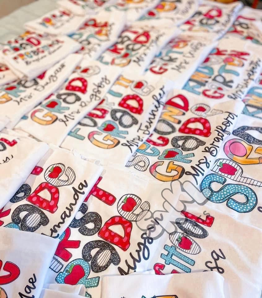 Our shirts are made with high quality ink and adhered with a professional grade heat press.