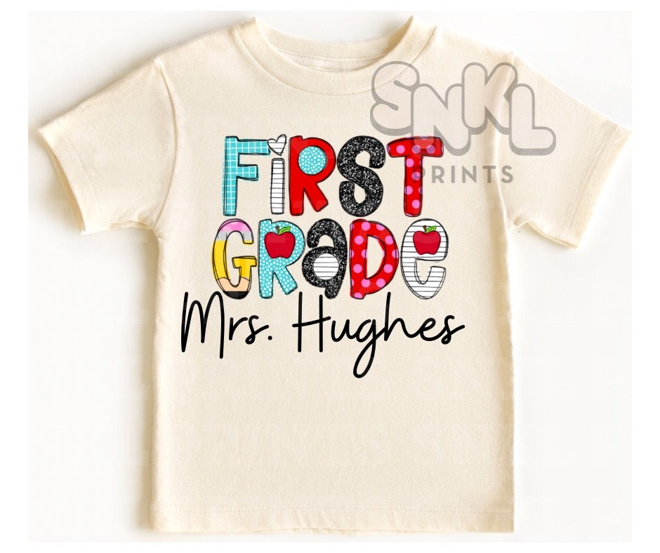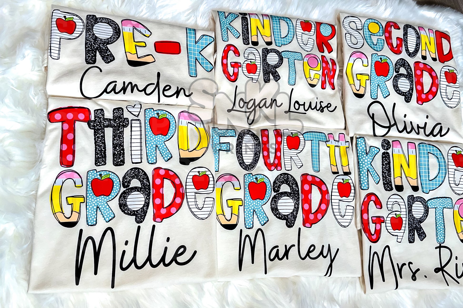 Introducing Grade School Alpha | Kids Shirt! This cool shirt features school supplies and will make any kid feel like an education pro. Perfect for showing off their grade level with style, this quirky and fun shirt is a must-have for any young student. Get yours today!