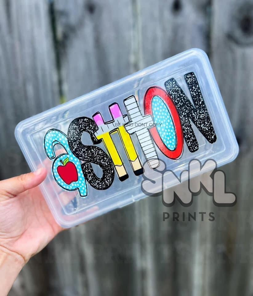 Get the kids ready to go back to school with our custom personalized pencil boxes! Our monogramed pencil boxes come in a variety of colors and styles! This plastic pencil box is perfect for storing pencils, markers, pens and more!