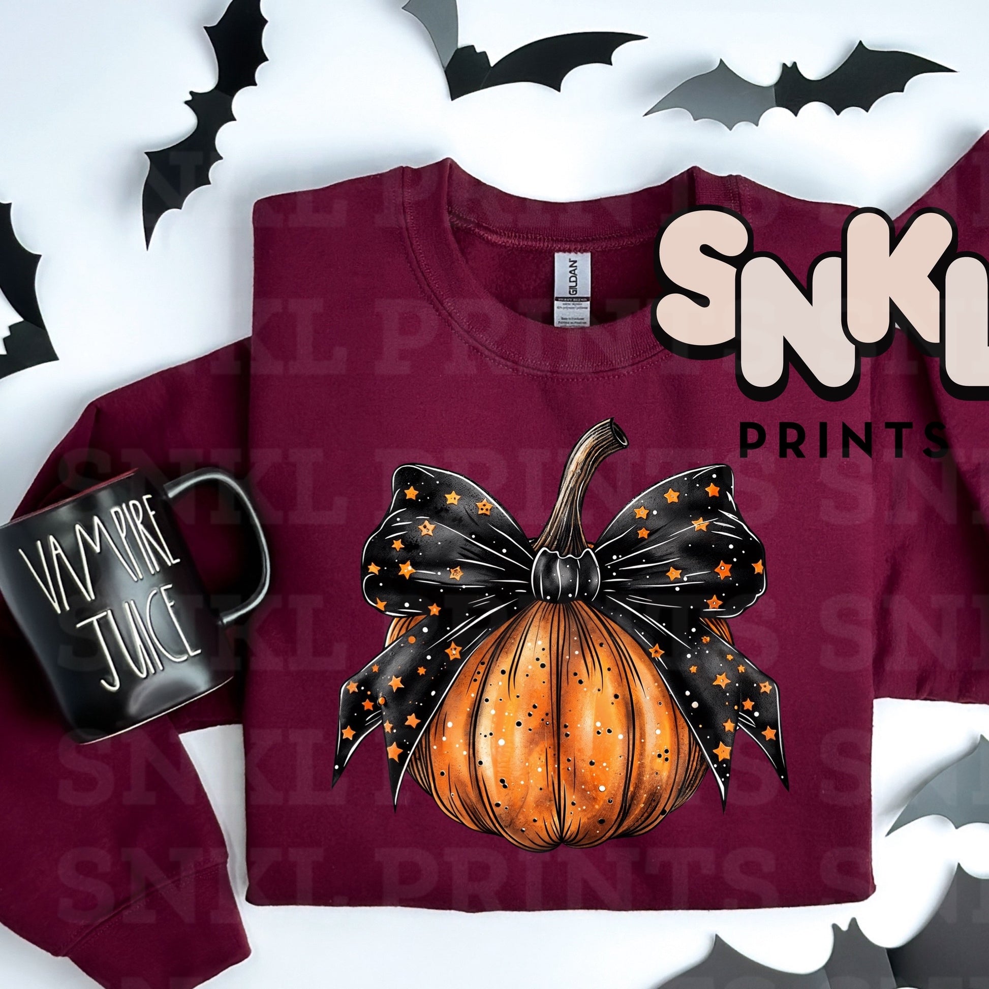 Get ready to add some sparkle to your outfit with our Pumpkin Sparkly Bow! This fun accessory features a pumpkin design with a bow adorned with stars. Perfect for kids and adults, this bow is sure to be a playful addition to any Halloween or fall ensemble.