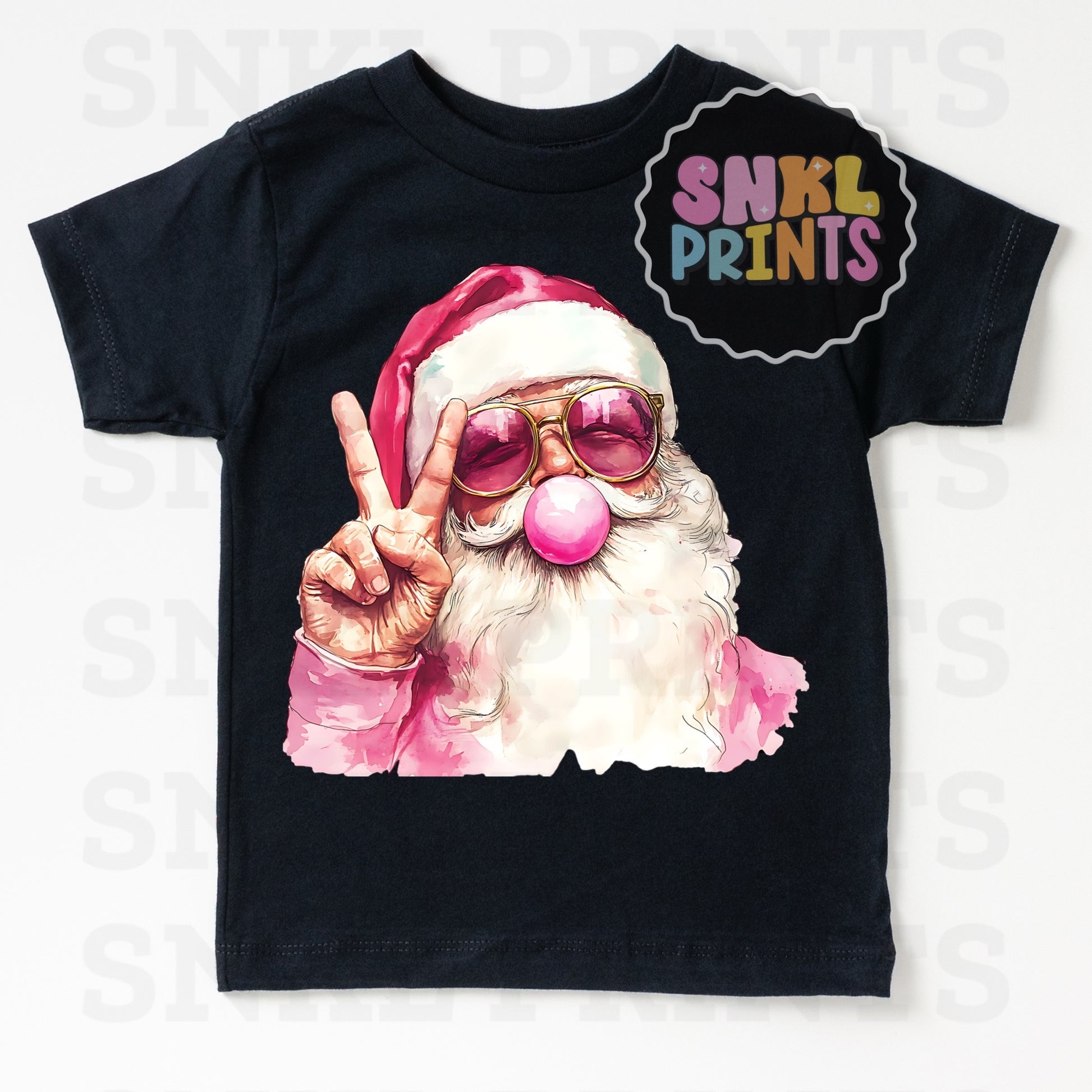 Retro Santa Blowing Bubble Peace Sign Tee | Kids & Adult