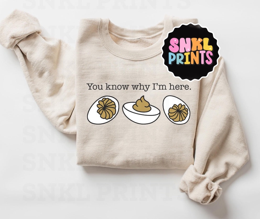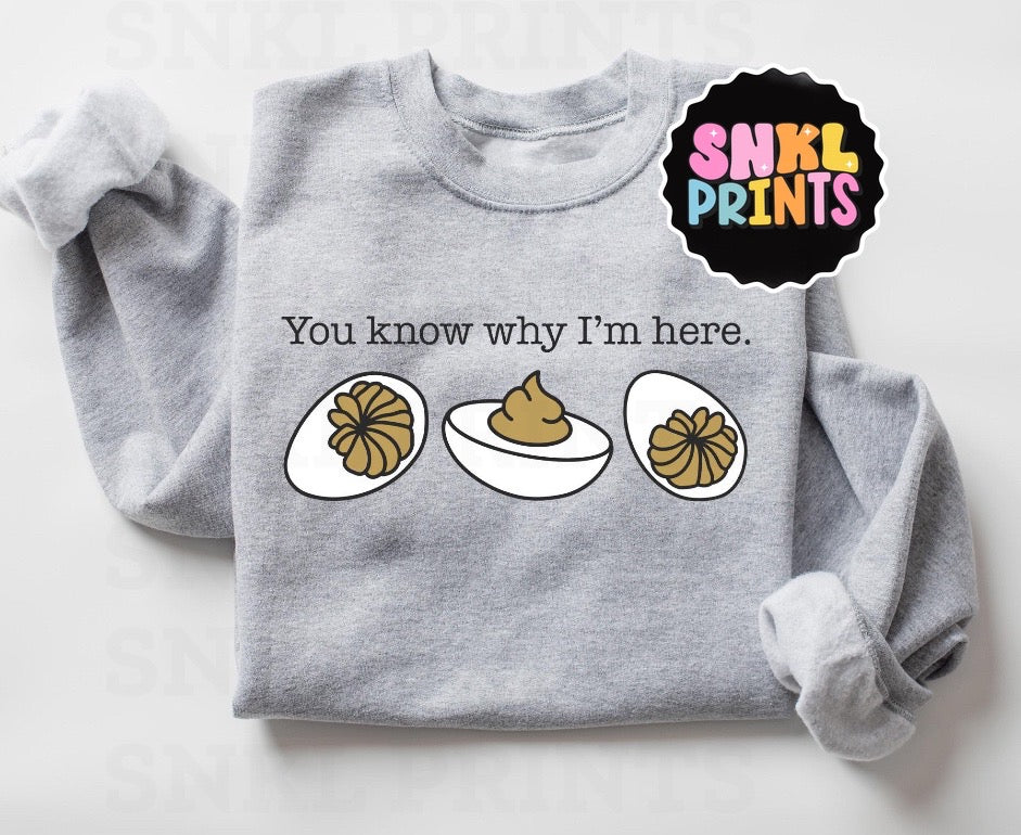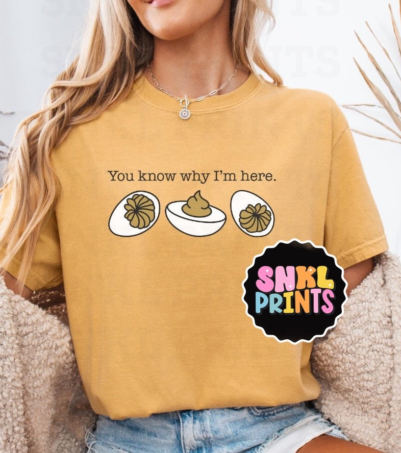 Be the life of the party with our "You Know Why I'm Here" deviled eggs shirt, available in kids and adult sizes. Show off your quirky side and sense of humor with this unique and playful design, perfect for any occasion. Don't miss out on this conversation starter!